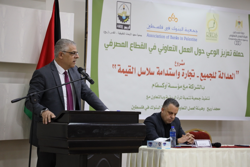 نفذت هيئة العمل التعاوني وجمعية تنمية المرأة الريفية وجمعية البنوك في فلسطين ومعهد الأبحاث التطبيقية "أريج" اليوم ورشة عمل بعنوان "حملة تعزيز الوعي في العمل التعاوني للقطاع المصرفي"، والتي تهدف إلى المساهمة في حل الإشكاليات التي تواجهها الجمعيات التعاونية عند حصولها على الخدمات المصرفية، وتوعية موظفي المصارف بمفهوم وماهية الجمعيات التعاونية، وتشجيعهم على إنشاء جمعيات تعاونية لدعم العمل التعاوني.