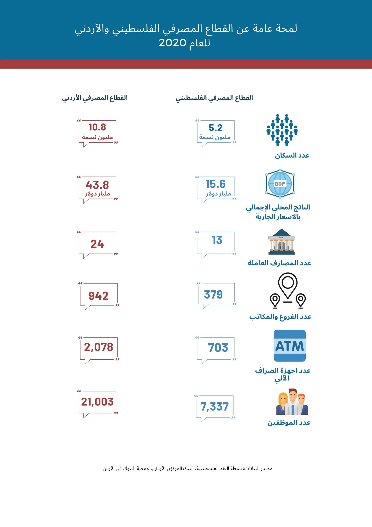 مقارنة القطاع المصرفي الفلسطيني مع القطاع المصرفي الأردني 2020